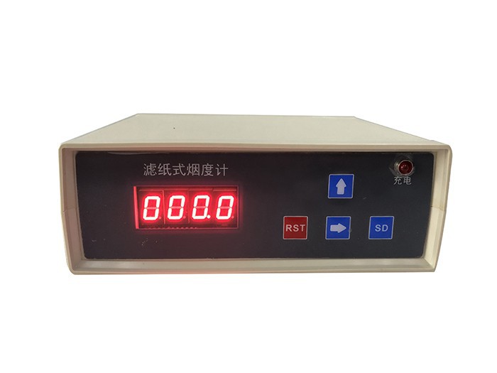 此儀器的工作原理是用一只活塞式抽氣泵,從柴油機排氣管中抽取定量容積(330毫升)的排氣氣體,使它通過一張一定面積的白色濾紙,于是排氣中的碳粒就粘附在濾紙上而使濾紙染黑,然后利用光電檢測裝置測量濾紙上煙痕的吸光率來評定為柴油機的排氣煙度。